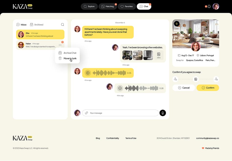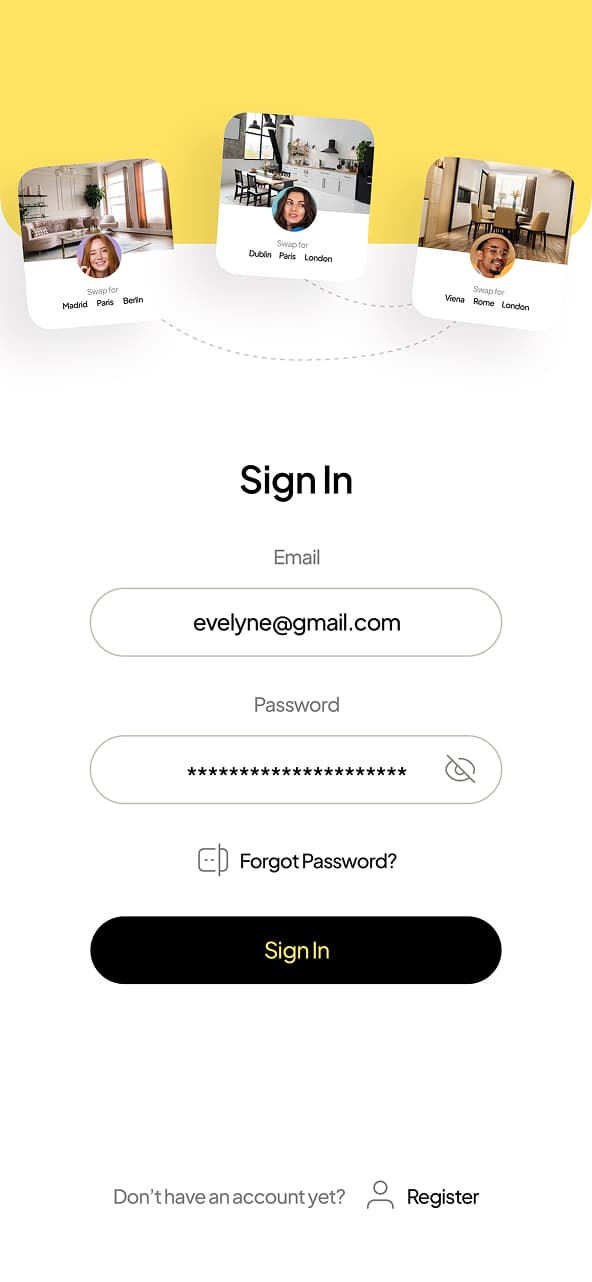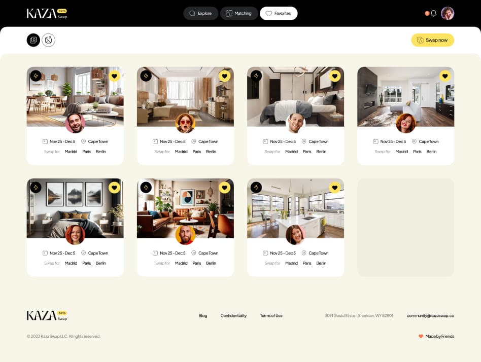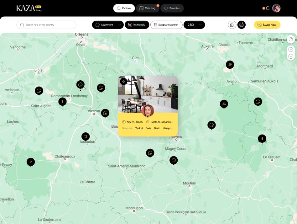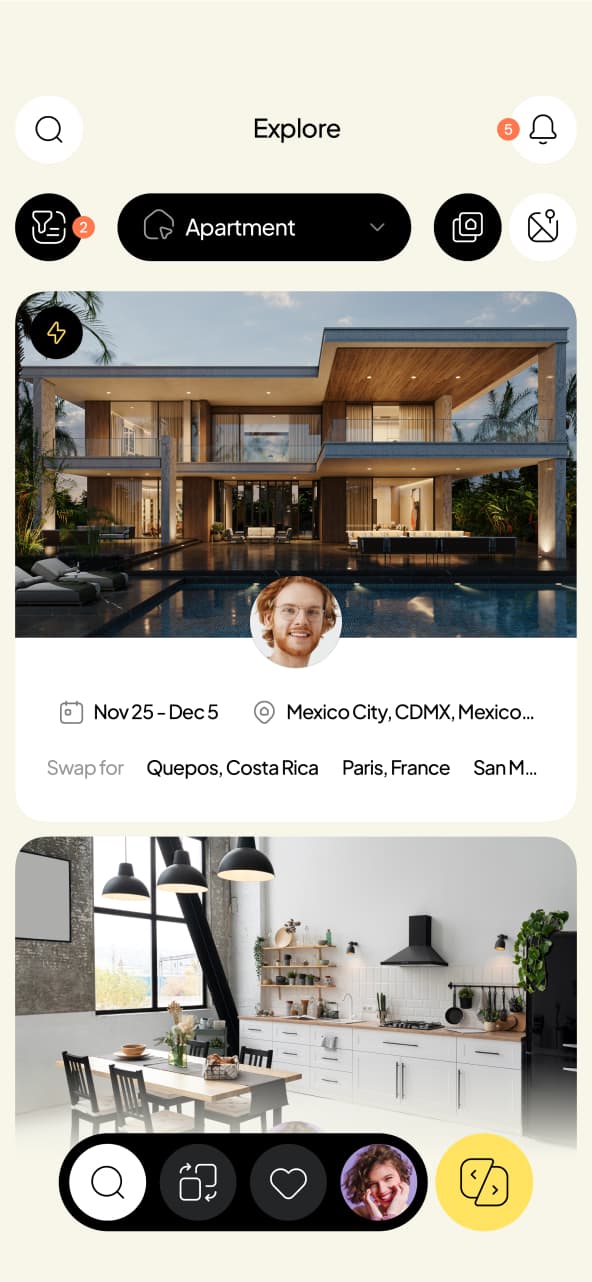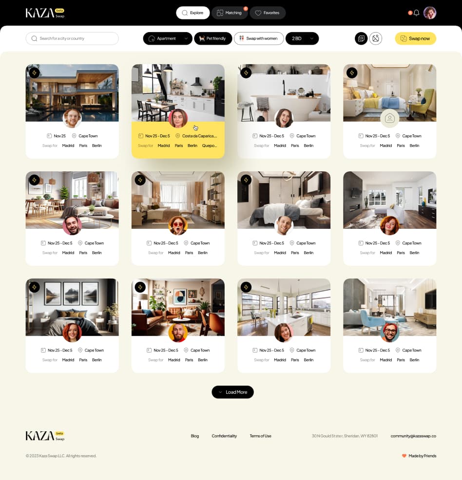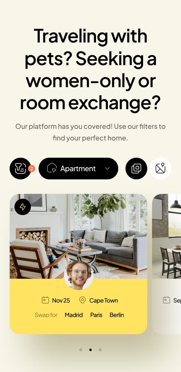 The client approached us to design a web application that enables temporary housing exchanges across different parts of the world, helping users avoid expensive hotel and apartment rental costs.